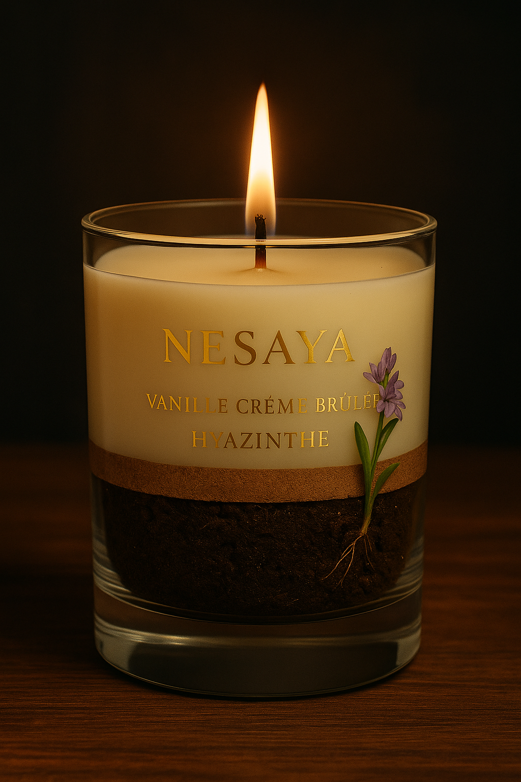 Eine handgegossene Duftkerze mit Seele: Vanille Crème Brûlée & Hyazinthe – zart, warm und symbolisch für Neubeginn.